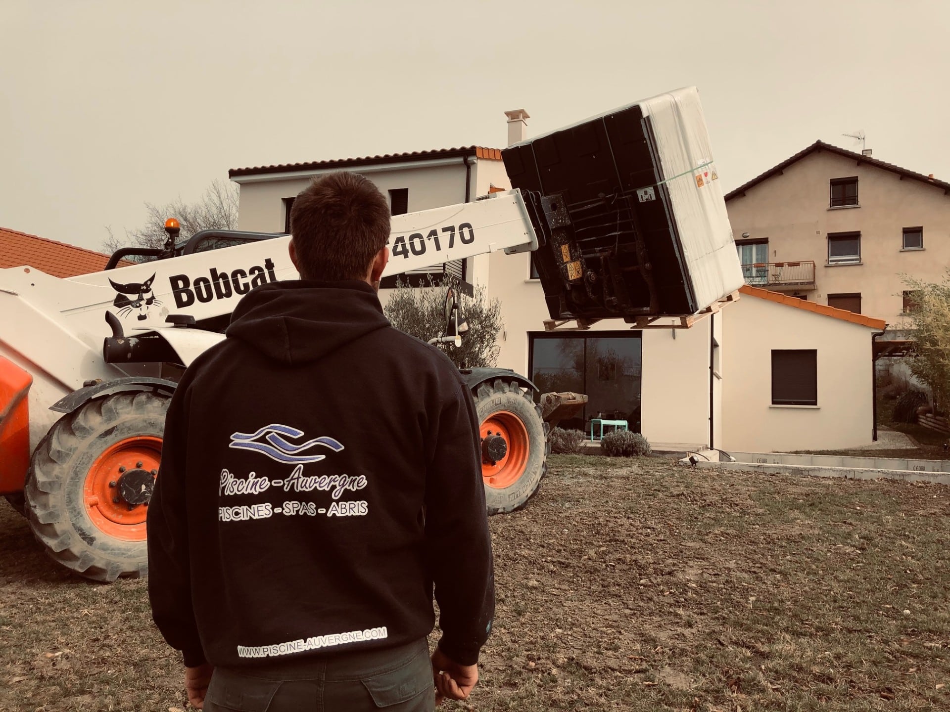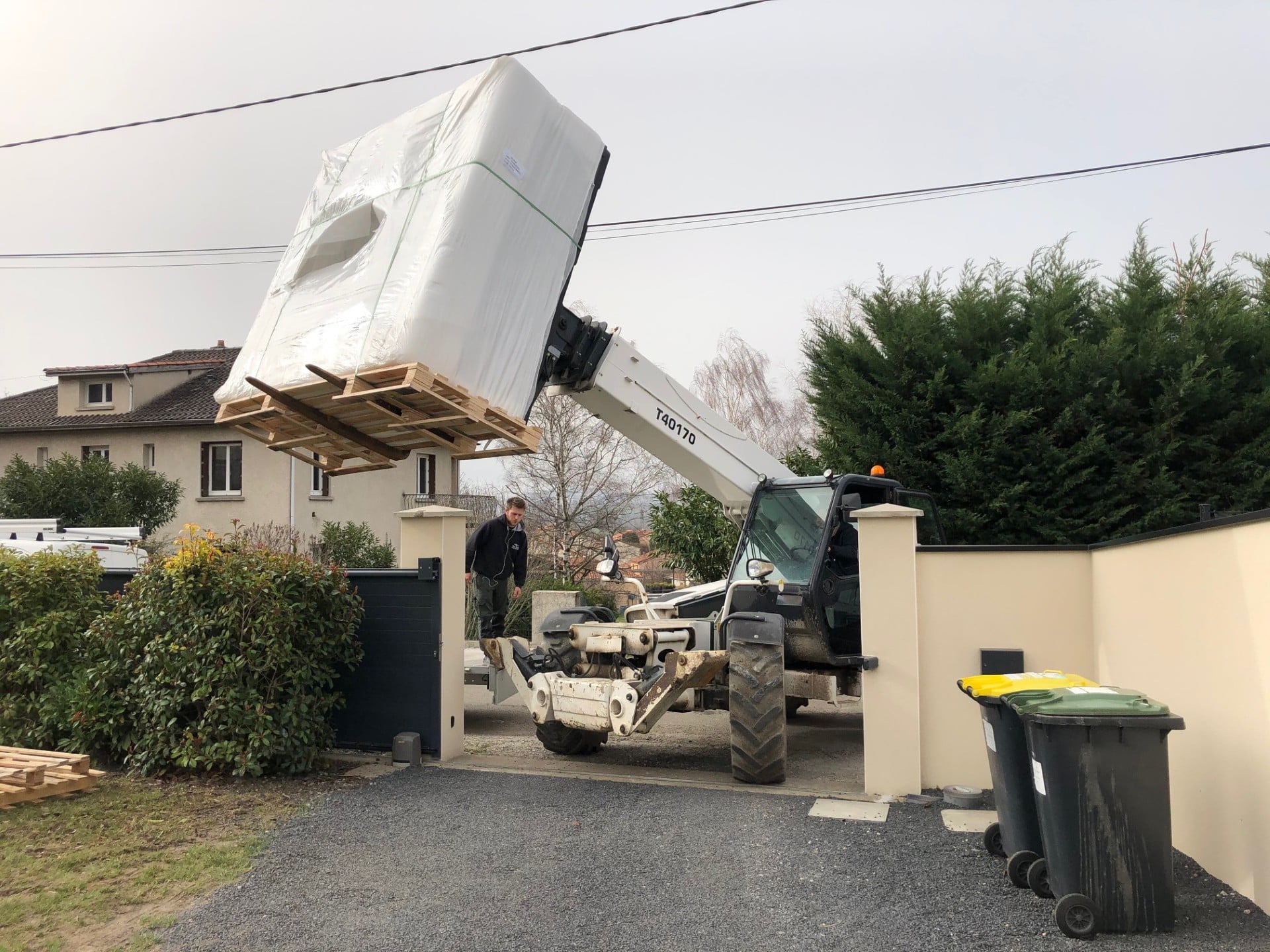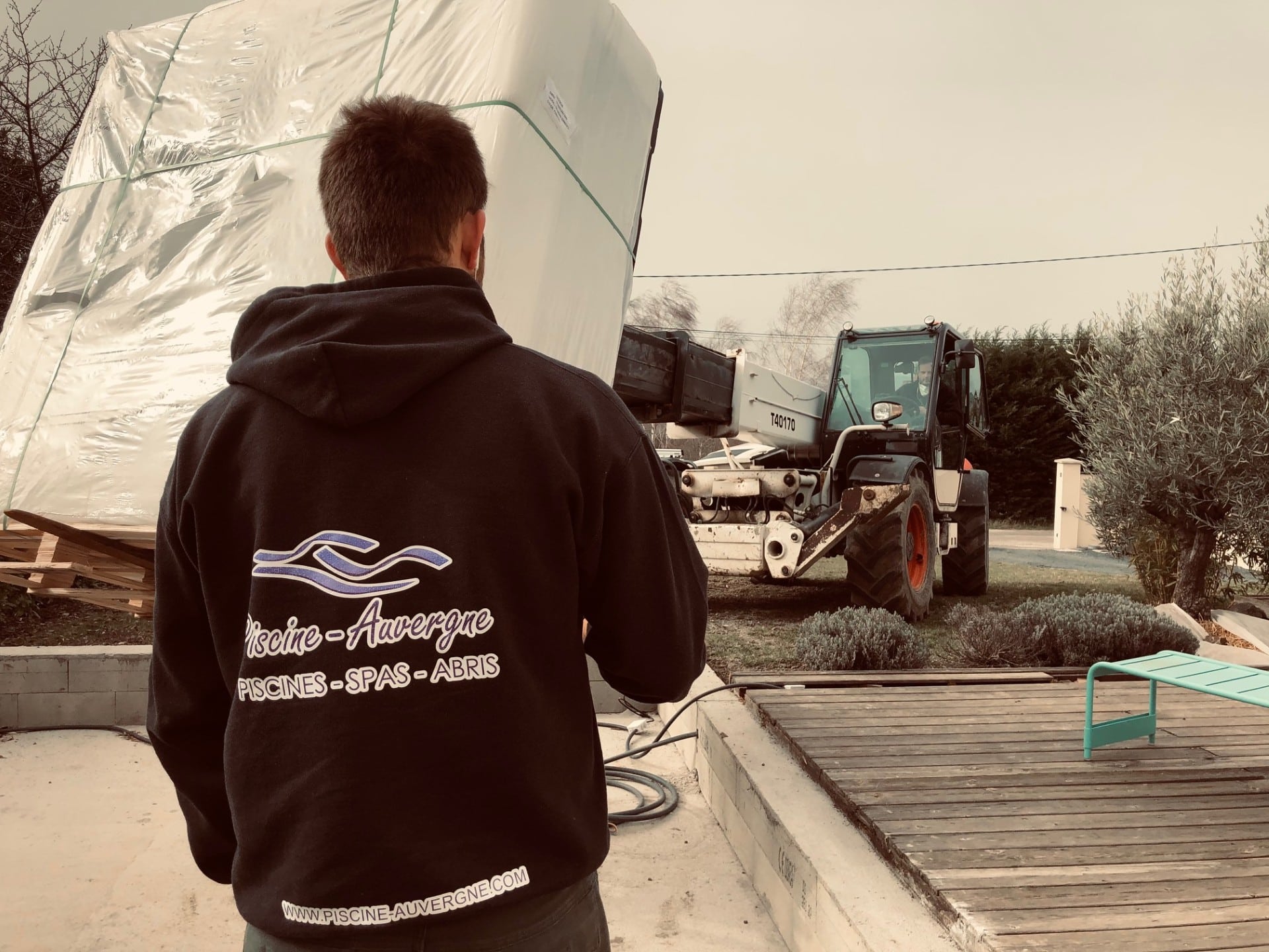 Livraison d’un spa 5 places avec un télescopique sur la commune de Vertaizon