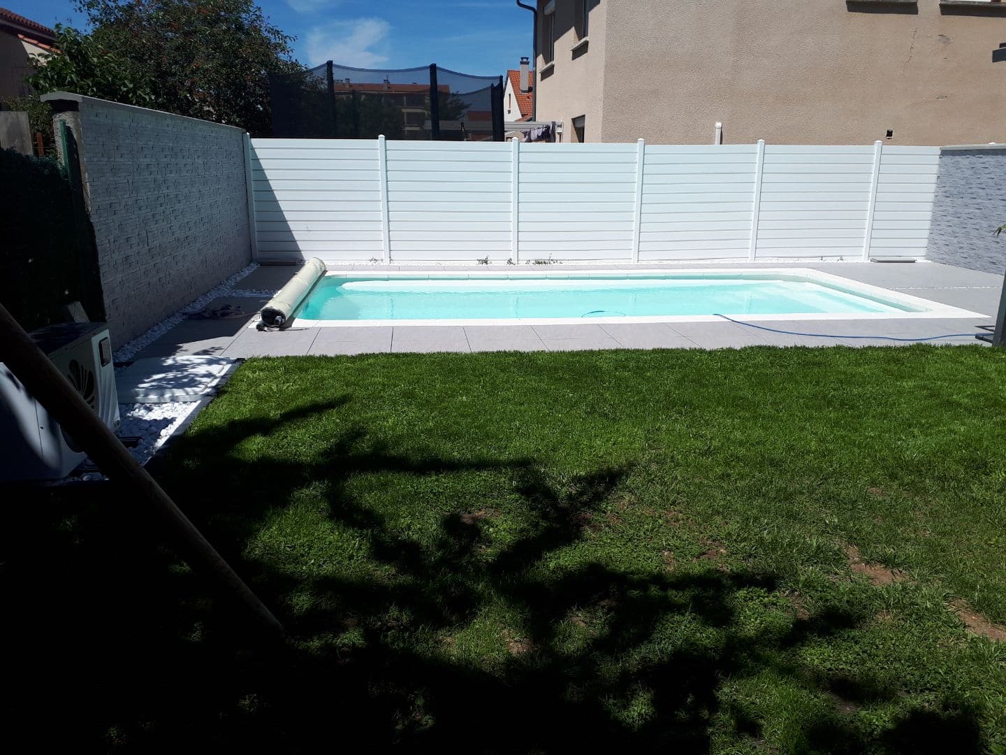 Pour optimiser cette chaleur, associez à votre pompe à chaleur une bâche à barres ou une couverture automatique. Ces protections thermiques limitent considérablement les déperditions, retiennent la chaleur accumulée durant la journée et réduisent également l’évaporation d’eau. De plus elles protègent votre bassin des impuretés et renforcent la sécurité de votre piscine.